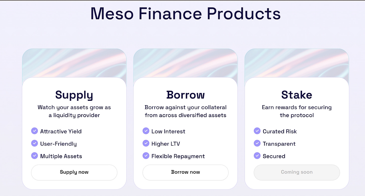 The $MESO token is also used to reward and incentivize users for actively participating in Meso Finance. These incentives not only enhance user engagement but also promote a richer user experience and strengthen ecosystem stability on Meso Finance